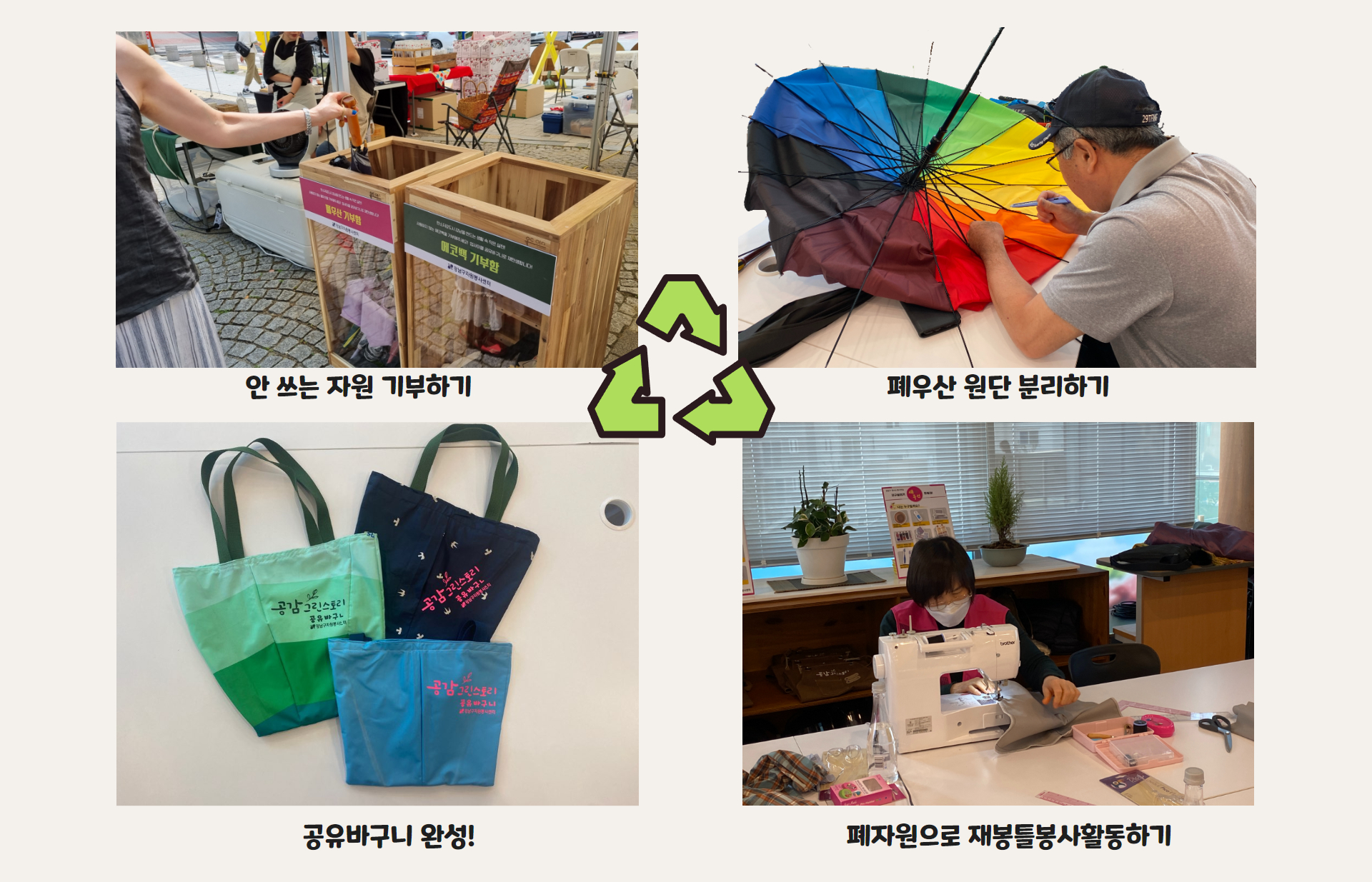 공감그린스토리를 중심으로 안쓰는 에코백, 헌 옷, 폐우산을 분리하여