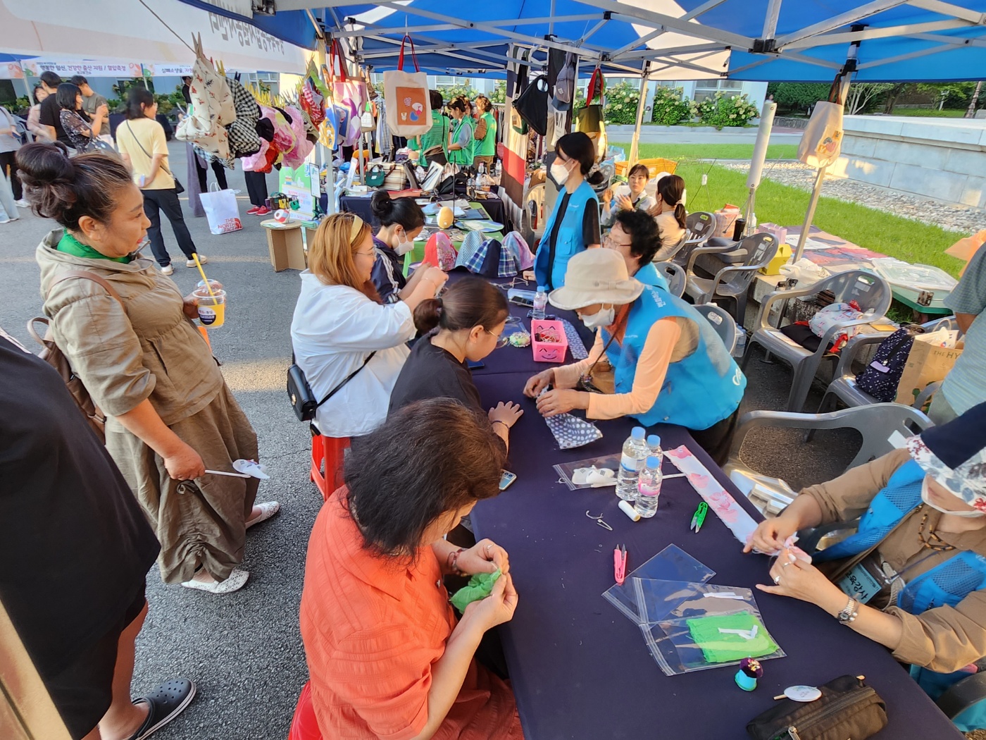 재봉틀봉사단을 처음 양성했을 때는 어떤것을 어떻게 만들어야지 많은 고민도 하고 어려워 하셨는데 점차 새로운 아이디어도 내서 만들어보고 다양한 물품들을 만들어 볼려고 하는 자원봉사자 선생님 모습에 변화가 있었으며 만들어진 물품으로 각 마을 축제 부스를 참여하여 사람들에게 버려지는 물품이 이렇게 예쁜 물품으로 탄생이 될 수 있다는 인식을 심어주었고, 점차 사람들도 인식도 변화가 되고 있다는걸 느꼈습니다.