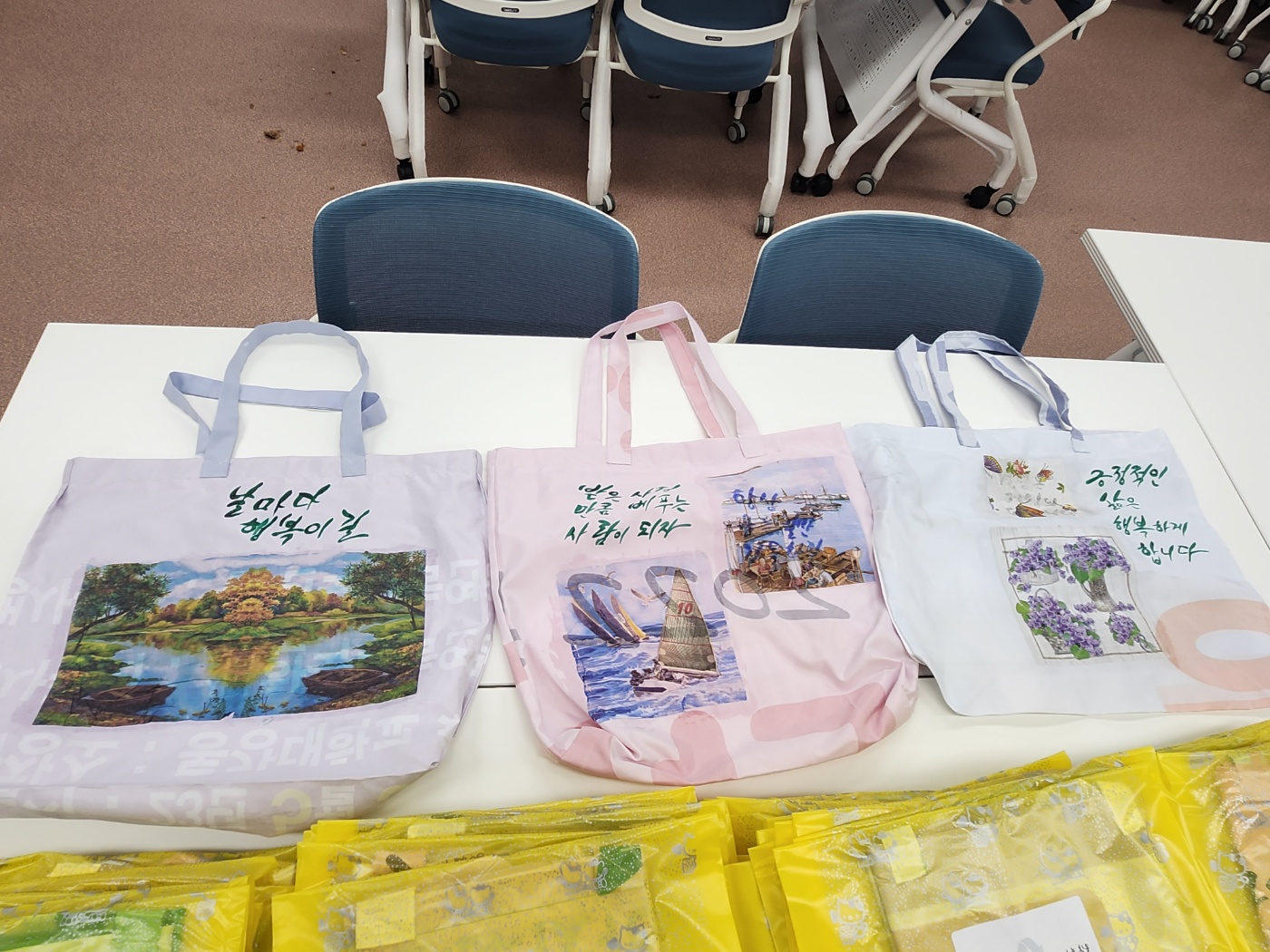 또한 시장에 찾아가서 일회용 비닐 대신 폐현수막 장바구니를 이용하자는 캠페인도 하면서 장바구니 나눔도 진행하였습니다.