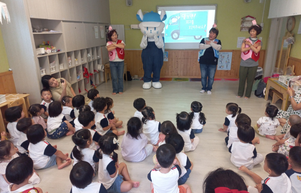 여성리더 봉사자들이 나서 교육 자료도 직접 만들고, 내용도 재구성하여 영아 어린이집의 경우 동화구연과 밀크맨 캐릭터 인형 등장 형태로 교육을 진행하니 교육 효과 반응이 훨씬 좋게 나타났다.