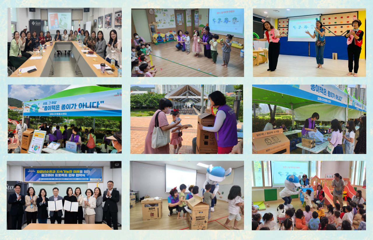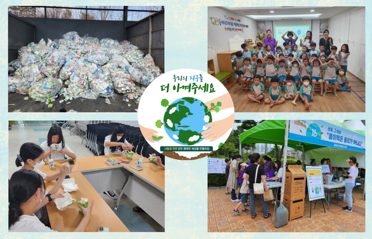 지역사회 곳곳에 시민들이 종이팩 올바른 분리배출 인식이 개선될 수 있도록 자원봉사자들과 함께 다양한 캠페인 활동을 펼쳐, 김해 전역에 확대 될 수 있도록 자원순환 가치 향상을 위해 적극 노력해 나갈 것이다.