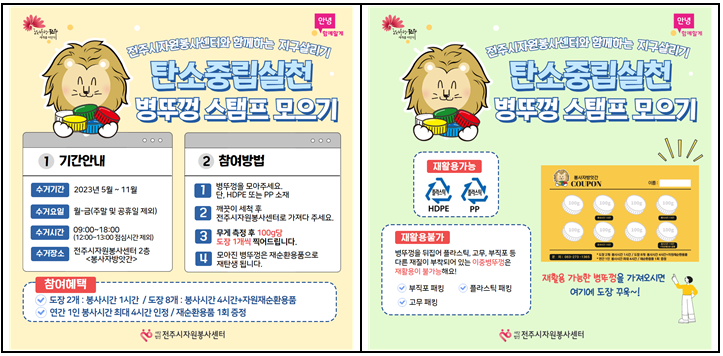 ‘병뚜껑 모으기 캠페인’으로 도장 쿠폰을 만들어 홍보를 진행하였습니다. 청년, 대학생, 일반 자원봉사자들을 대상으로 SNS(페이스북, 블로그, 센터홈페이지)와 센터 내에서 진행하는 프로그램을 통해 지속적인 홍보를 진행했습니다.