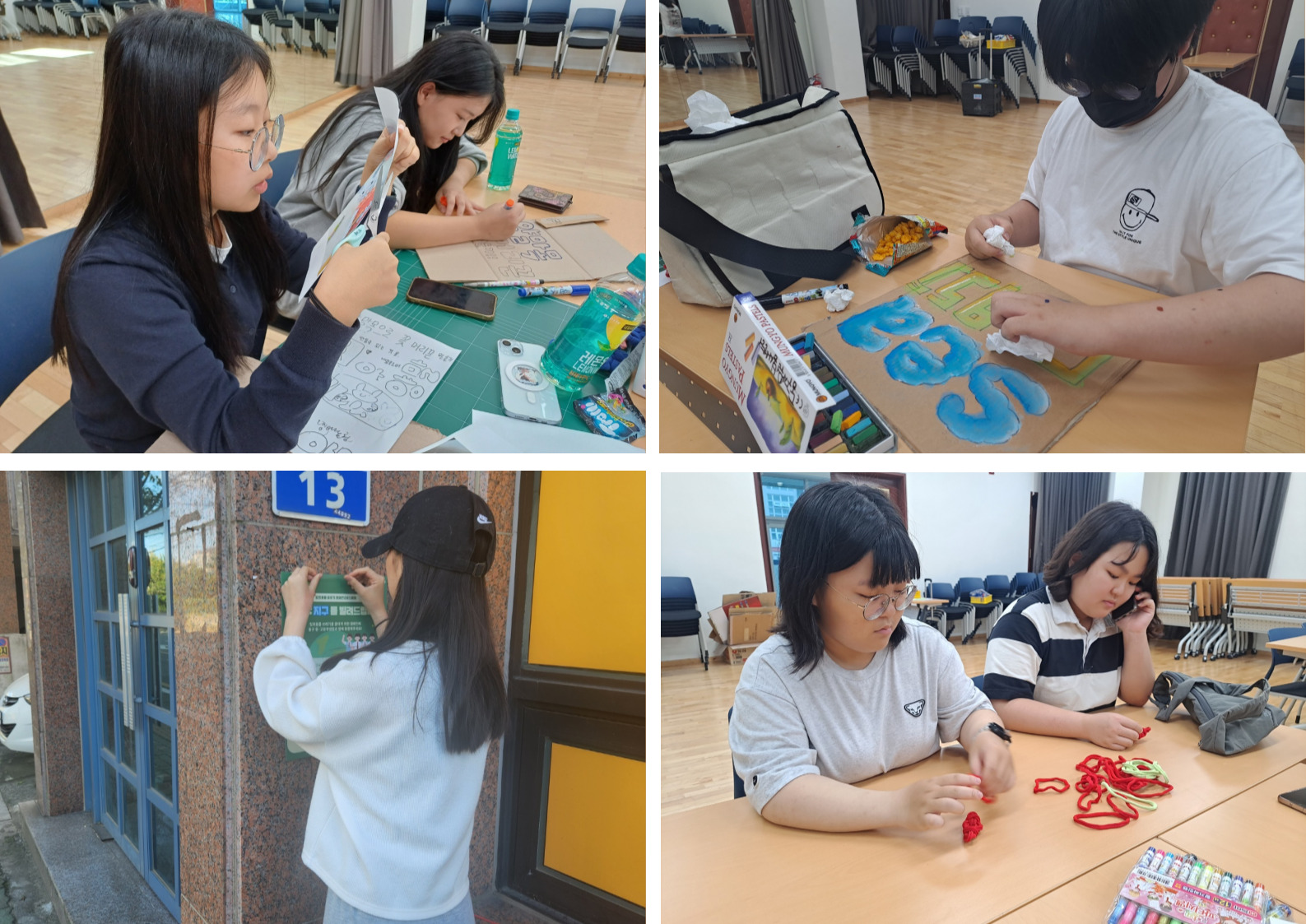 청소년들의 인식개선을 위해 환경의 중요성을 교육하고 실제 업사이클링 활동으로는 무엇이 있는지, 업사이클링의 재료들(양말목, 폐현수막, 플라스틱 등)이 환경에 어떤 문제를 가지는지 직접 조사를 실시했습니다. 이런 과정을 통해 청소년들이 환경 문제를 다시 한번 인식하는 계기가 되었습니다.