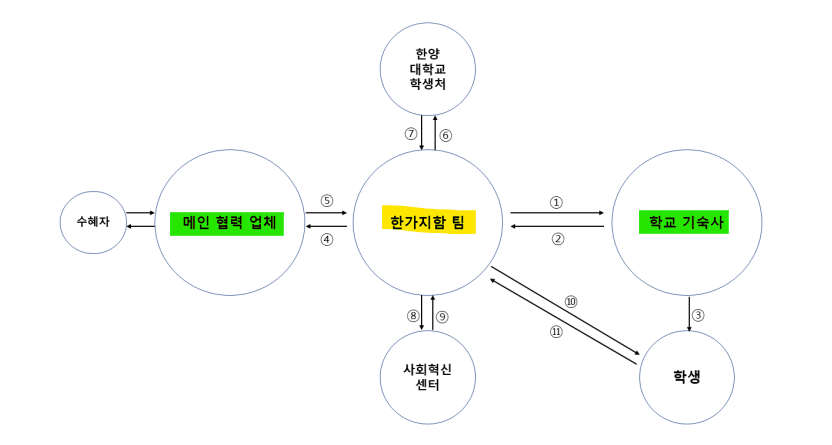 1. 학교의 행정적인 협조가 필요하다고 생각합니다. 기숙사는 학교의 공식적인 건물이고 학생들의 금전적인 부분과도 연관되어 있기 때문에 교내 다양한 행정팀들의 협조가 더욱 필요한 상황입니다.