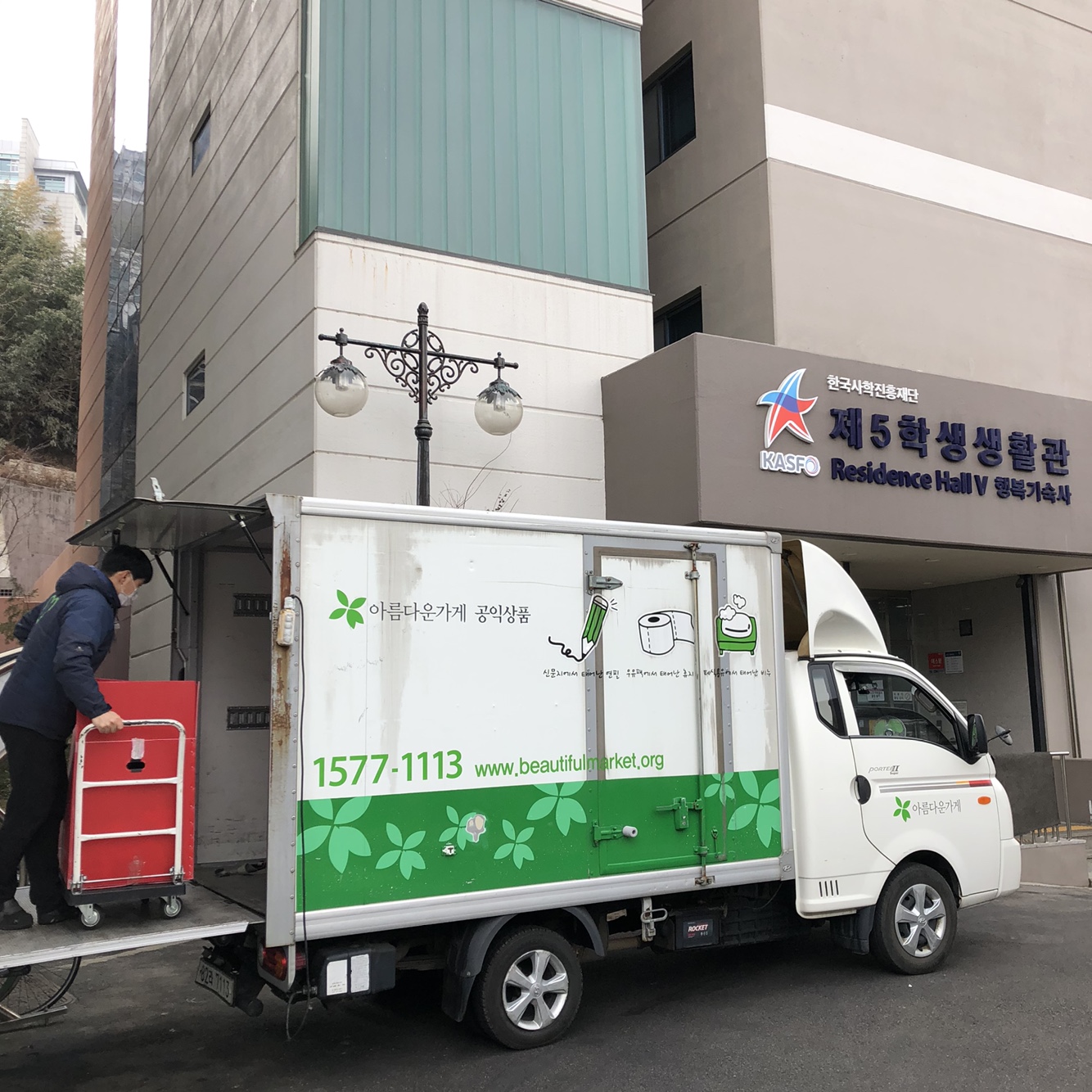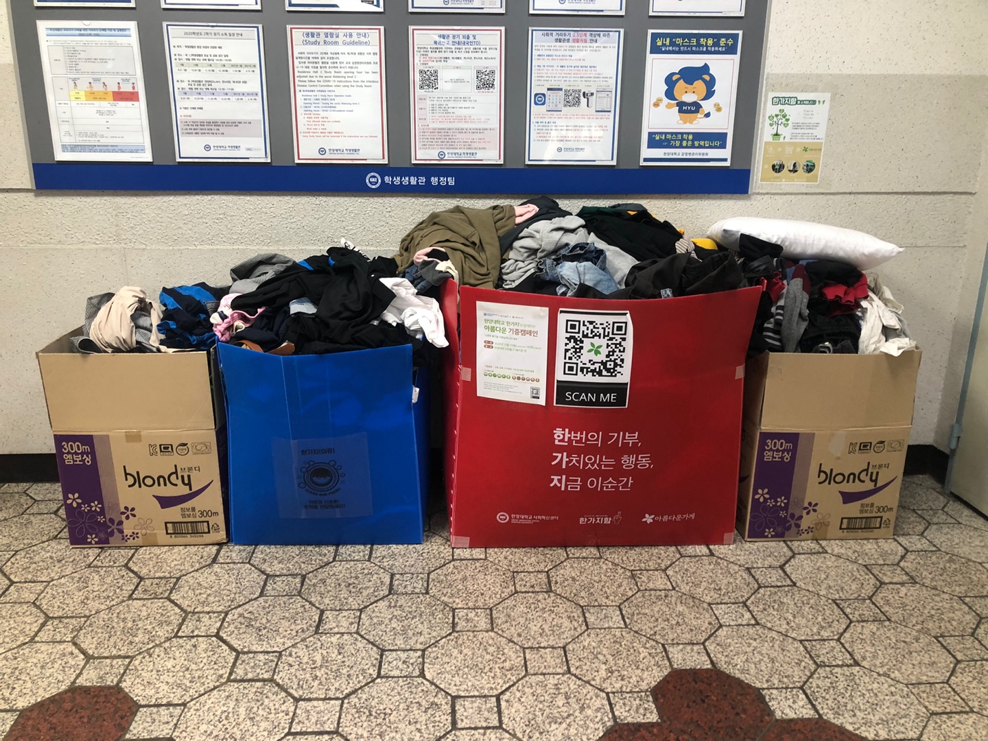그 결과 기숙사생들로부터 기부받은 물품을 아름다운 가게에 보내어 재사용할 수 있는 자원의 선순환구조를 구축해왔습니다. 하지만, 기부받은 물품들의 최종적인 목적지는 아름다운 가게였기에 한양대 학생들에게는 자신들이 기부한 물품이 어디로 가는지에 대한 가시적인 결과물을 보이기가 어려웠습니다. 저희는 이러한 결과물을 학생들 스스로 창출해낼 수 있도록 다음과 같은 방안을 마련했습니다.