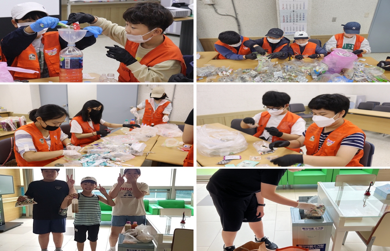 아이들에게 폐의약품에 대한 경각심도 알려주고 정확한 분류방법을 공지하기 위해 교육을 진행했습니다.