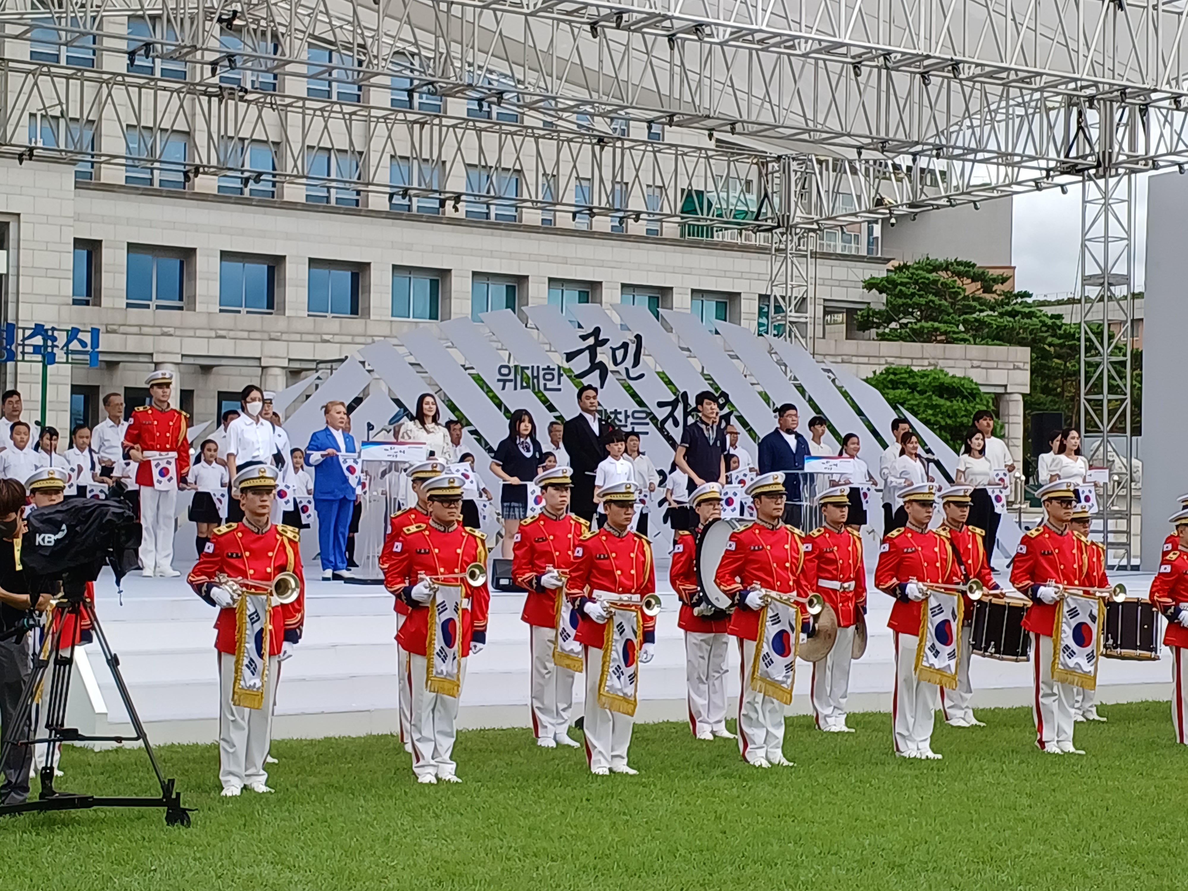 [사진] 2022년 광복절 행사(용산 대통령실)에 미래 세대 대표로 학생 2명이 대통령 내외분과 만세삼창!