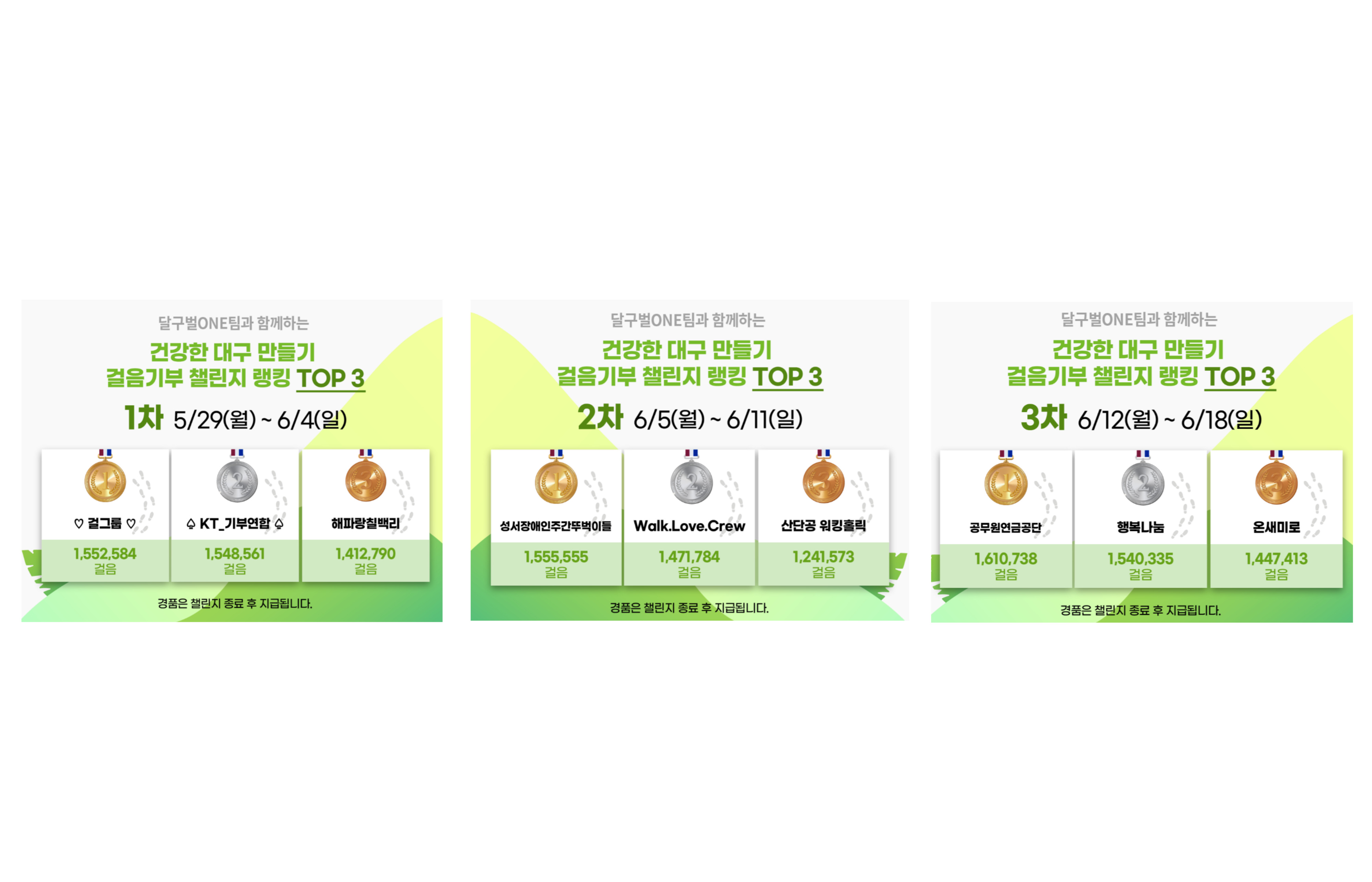 매 주마다 랭킹전을 통해 TOP3를 선정하여 상품을 제공한다는 동기부여와 함께 걸음기부 수에 비례하여 지역사회를 위한 사업기금으로 활용한다는 메세지를 끊임없이 지역사회에 알렸기에