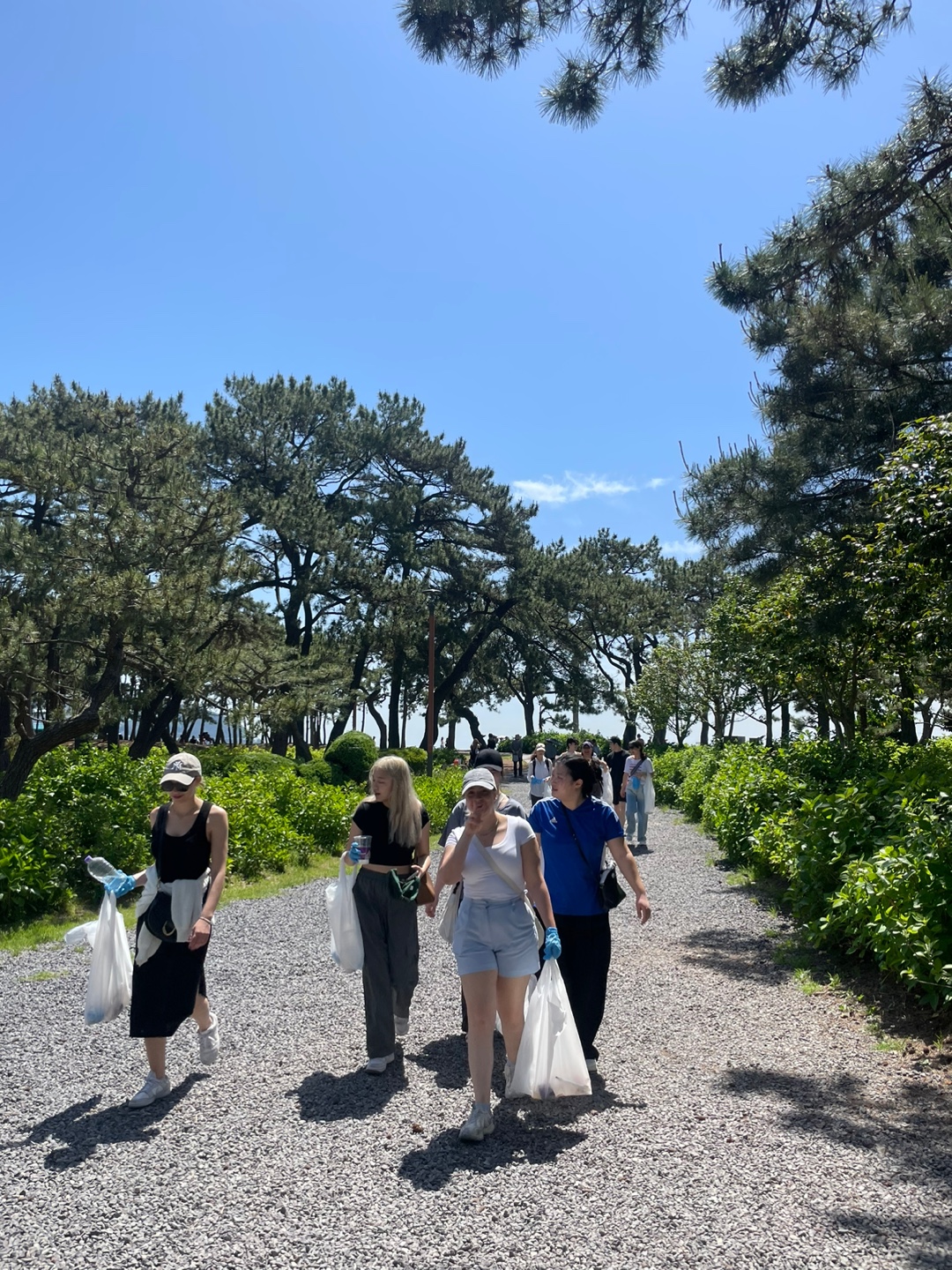 We started off from Haeundae Beach and walked along the coast to Millak Waterside Park. We enjoyed cleaning, picking up trash, and participating in cultural exchange.