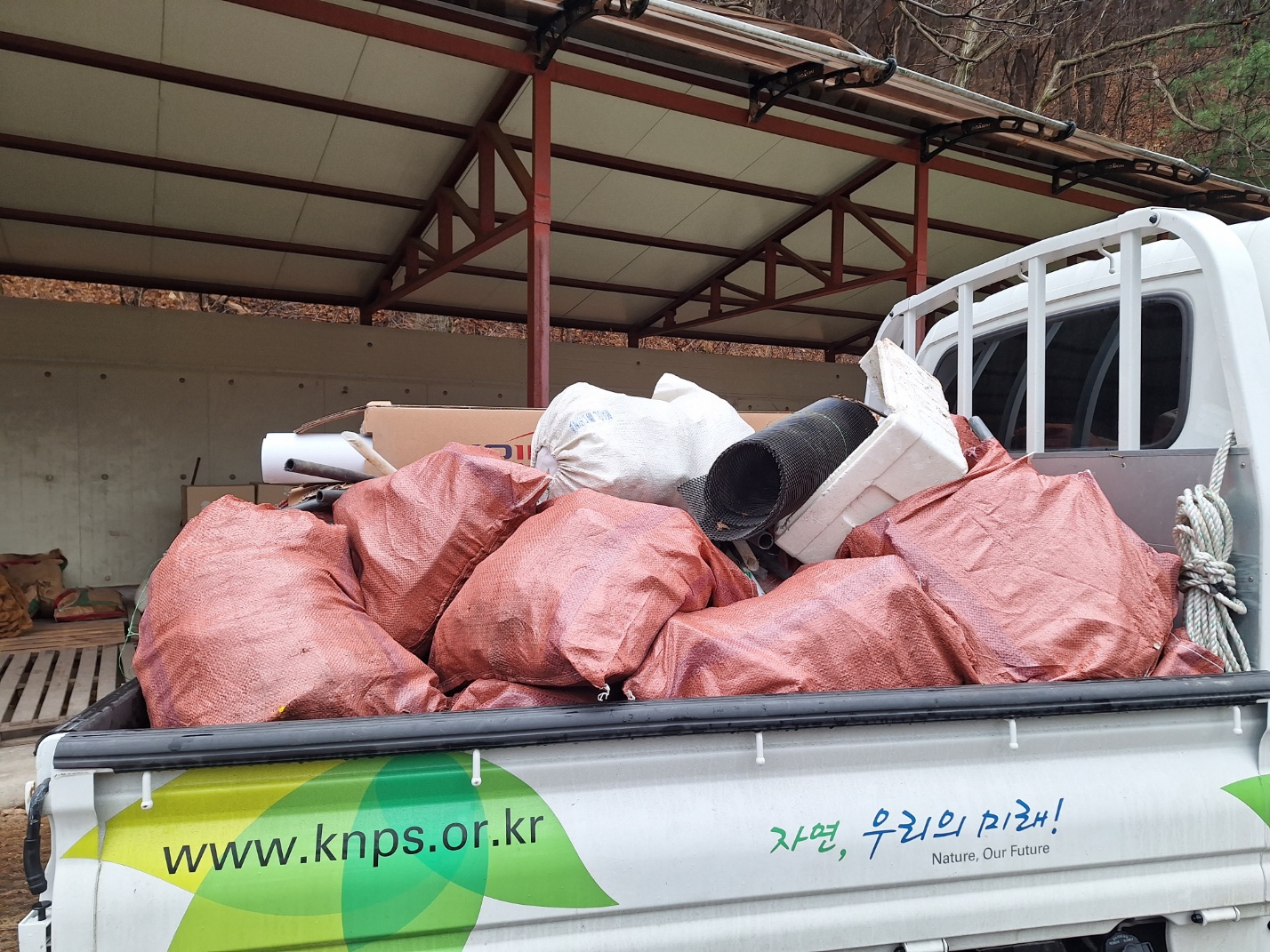 많은 양의 쓰레기를 한번에 옮기기 위해 치악산국립공원사무소 임직원 일동이 함께 참여하여 쓰레기 수거를 위한 장비 및 물품 등을 지원해줬습니다.