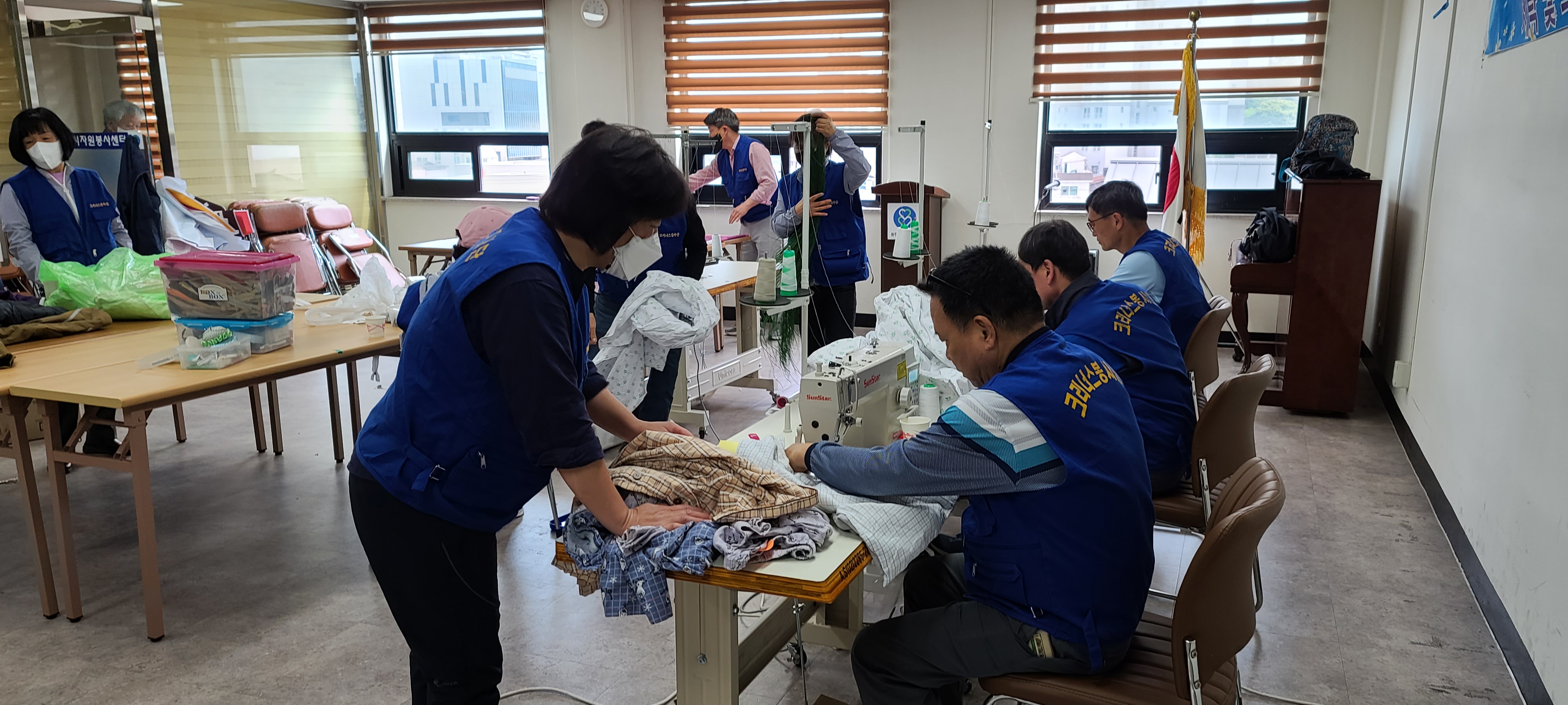 -부대 제작과 더불어, 사회복지시설에서 수선이 필요한 옷을 접수 받아 수선해 주는 의류 수선 전문봉사활동도 병행하여 실시