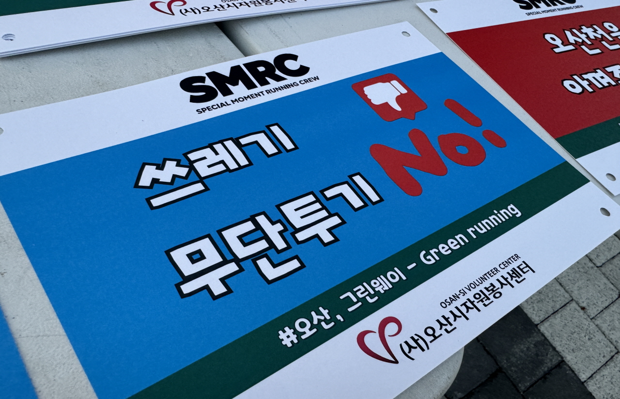 오산천을 이용하는 시민들에게 보다 더 효과적으로 메세지를 전달하기 위해 배번표 크기확대, 눈에 잘 띄는 색상으로 제작 등의 방법으로 개선하고자 합니다.