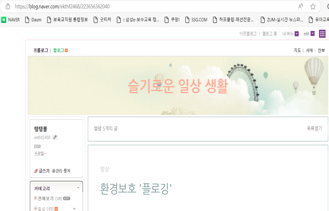플로깅 활동을 꾸준히 하면서 많은 사람들과 소통하고 쓰레기를 함께 주워보면 좋을 것 같다. 또한 (https://blog.naver.com/ekthf2468/223656362040)내 개인 블로그에 플로깅 사진을 올리면서 많은 사람들이 보고 느껴보았으면 좋겠다고 생각했다. 그리고 한 번쯤 사람들이 플로깅을 해보았으면 좋겠다는 생각도 해보았다.