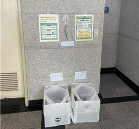 따라서 서울 시립대학교 건물에 종이팩 분리수거 방법에 대한 홍보 포스터를 부착하고 종이팩을 분리수거 할 수 있는 공간과 수거함을 비치했습니다. 포스터를 들고 다니며 학생들의 참여를 유도했고, 학생들에게 적극적으로 포스터에 적힌 내용을 설명하는 등 분리수거에 대한 학생들의 인식을 제고하고자 노력하였습니다.
