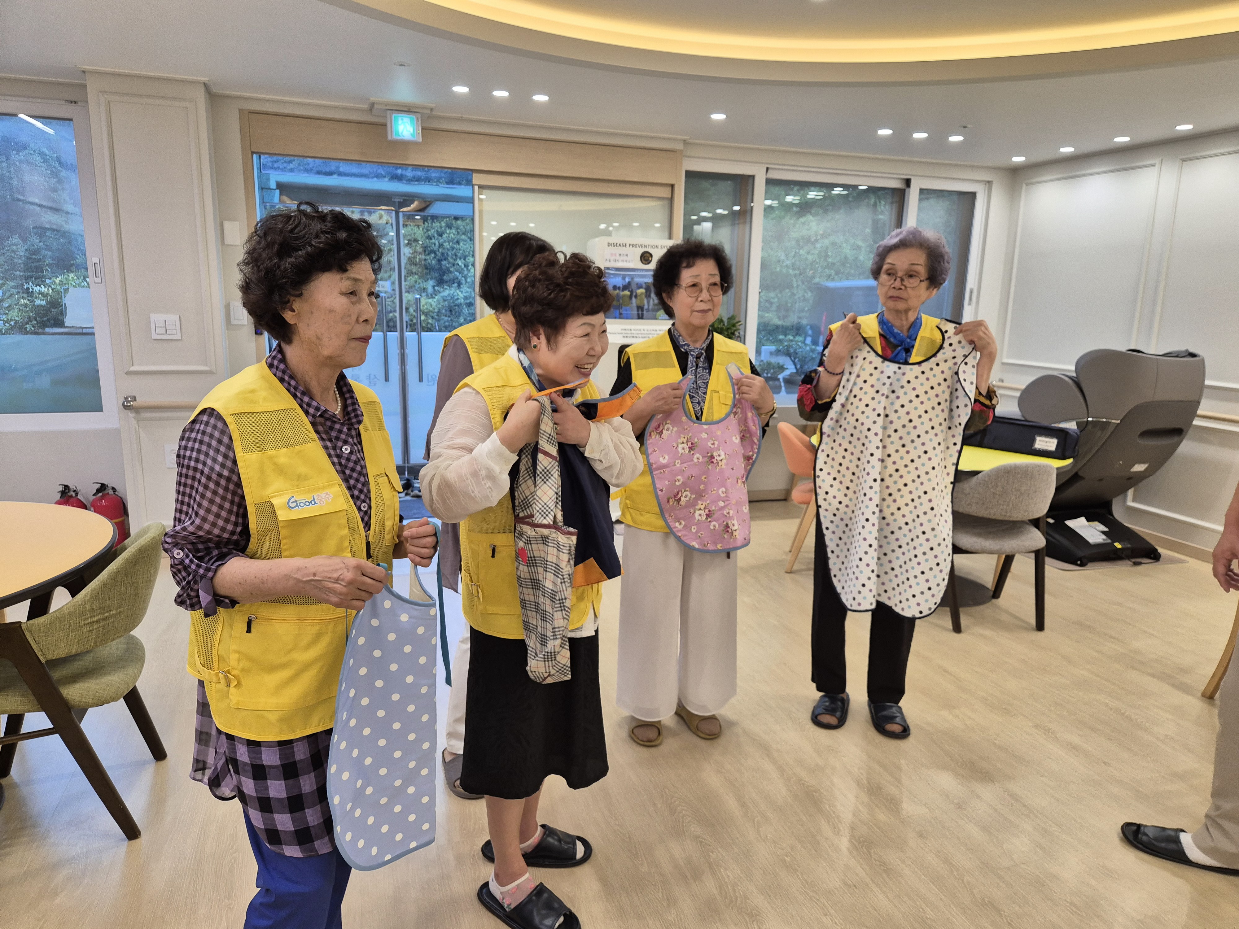 우산 천으로 방수 턱받이와 앞치마를 제작하면 첫번째, 자원 재활용과 환경 보호에 큰 도움이 됩니다. 재활용하면 쓰레기를 줄이는 효과가 있으며, 환경 보호에도 기여할 수 있습니다. 두번째, 우수한 방수 기능입니다. 우산 천은 원래 비를 막기 위해 설계된 소재라 방수성이 뛰어나서 물이나 액체가 잘 스며들지 않아 몸이 불편하신 어르신들이나 장애인분들이 식사 시에 옷이 오염되는 걸 막을 수 있습니다. 세번째, 가벼운 소재입니다. 얇고 가벼워 착용감이 좋고 장시간 착용해도 부담이 적고 활동에 불편함이 적습니다. 네번째, 내구성과 경제성입니다. 우산천은 마모에 강하고 튼튼한 소재라 잘 찢어지지 않아 내구성이 좋고 오래 사용할 수 있어 경제적입니다. 다섯번째, 세척 용이성입니다. 우산천은 물과 먼지를 잘 튕겨내므로 쉽게 오염되지 않고, 오염이 생기더라도 간단히 닦아낼 수 있습니다. 마지막으로는 디자인이 개성있고 다양합니다. 우산은 여러 색상과 패턴이 있기 때문에, 다양한 스타일의 턱받이와 앞치마를 만들 수 있습니다. 컬러풀하고 독특한 디자인을 통해 개성 있는 앞치마를 완성할 수 있다는 장점도 있습니다.