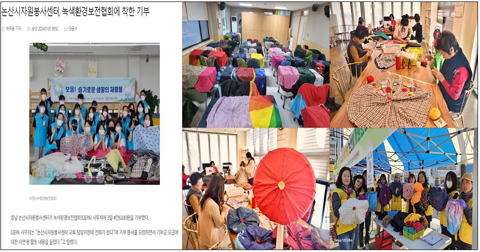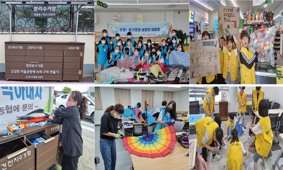 - 논산시자원봉사센터: 폐자원 수거 및 교환/ 단체 및 기관: 폐우산 분리 / 청소년그린Safe봉사단 동아리 분리 및 환경캠페인 큐알 코드 실시