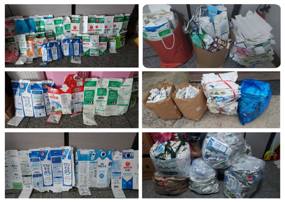 많은 종류의 쓰레기가 매립지에서 분해 되면서 메탄등 온실가스가 발생하여 지구 온난화를 가속 시키고 소각처리 비용도 많이 드는 것이 우리나라의 현실인데 작은 실천들이 모여 재활용률이 저조한 우유팩 수거에 촉진제가 되어 국가적으로 자원순환 체계가 강화 되었습니다.