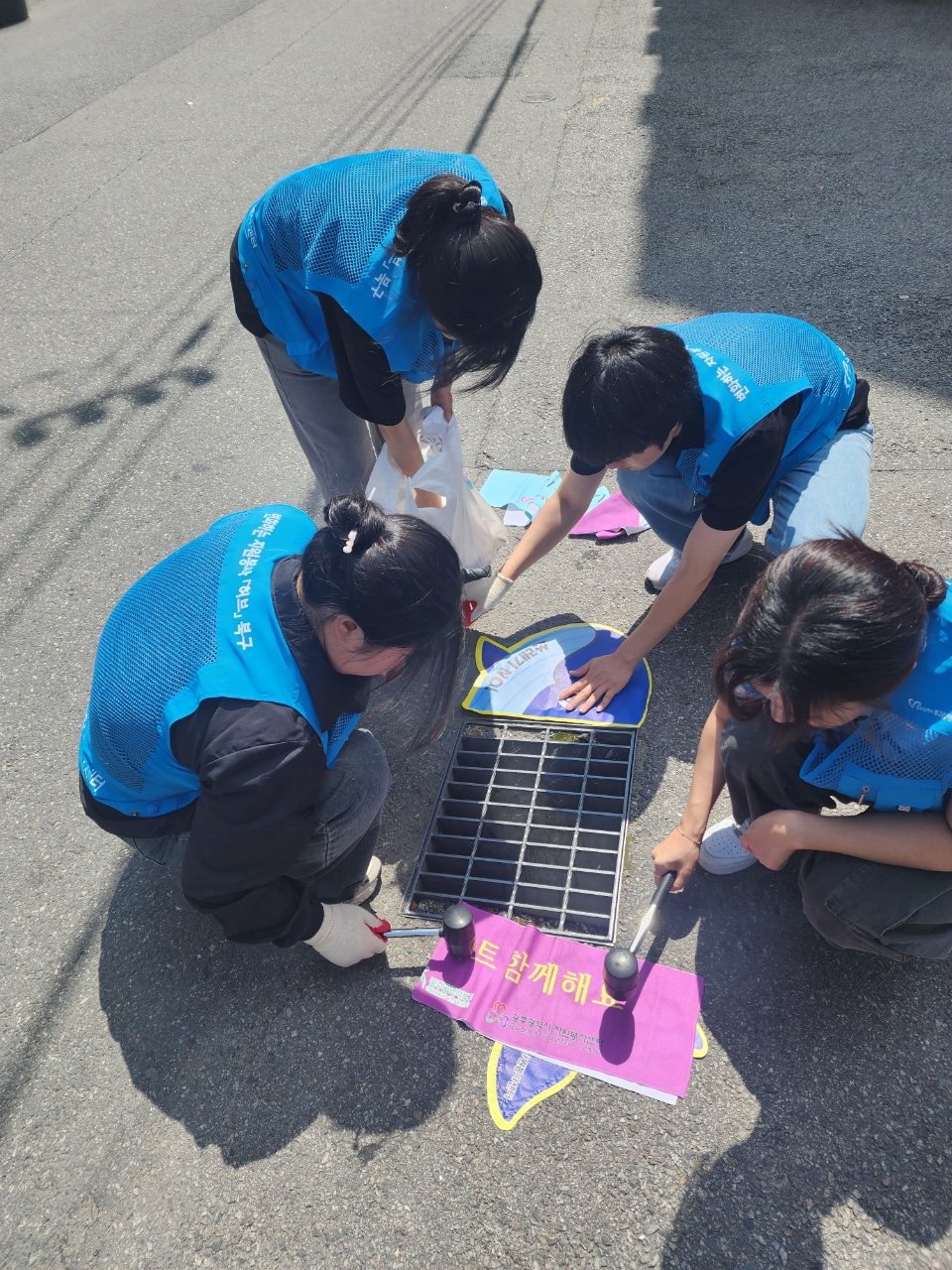2023년부터 올해까지 대학생 자원봉사 단체의 연합활동 ‘푸른고래 입양프로젝트’로 담배꽁초나 쓰레기를 함부로 버리지 못하도록 대학가 및 원룸촌을 중심으로 하수도 유입에 고래스티커를 부착하는 활동을 하였습니다.