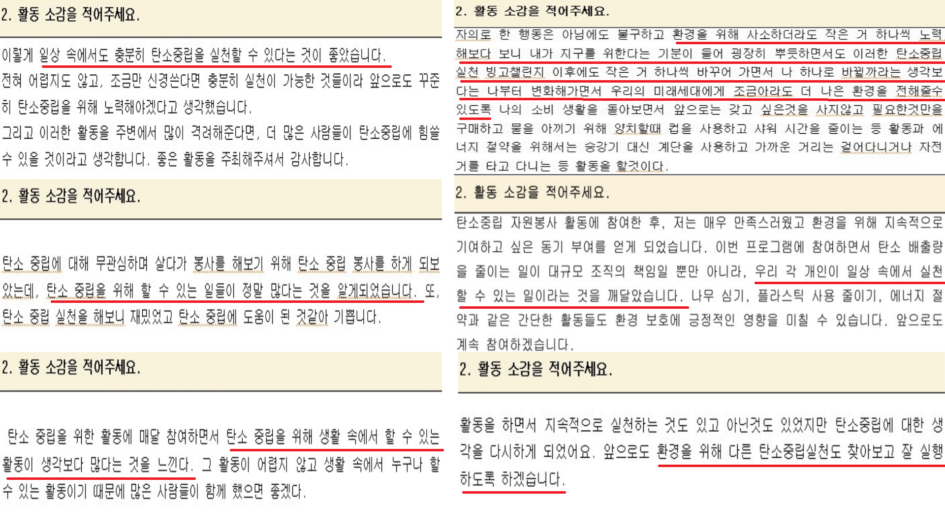 “이러한 탄소중립 활동이 있는 줄 몰랐다”, “나로 인해서 환경이 깨끗해졌으면 좋겠다” 등