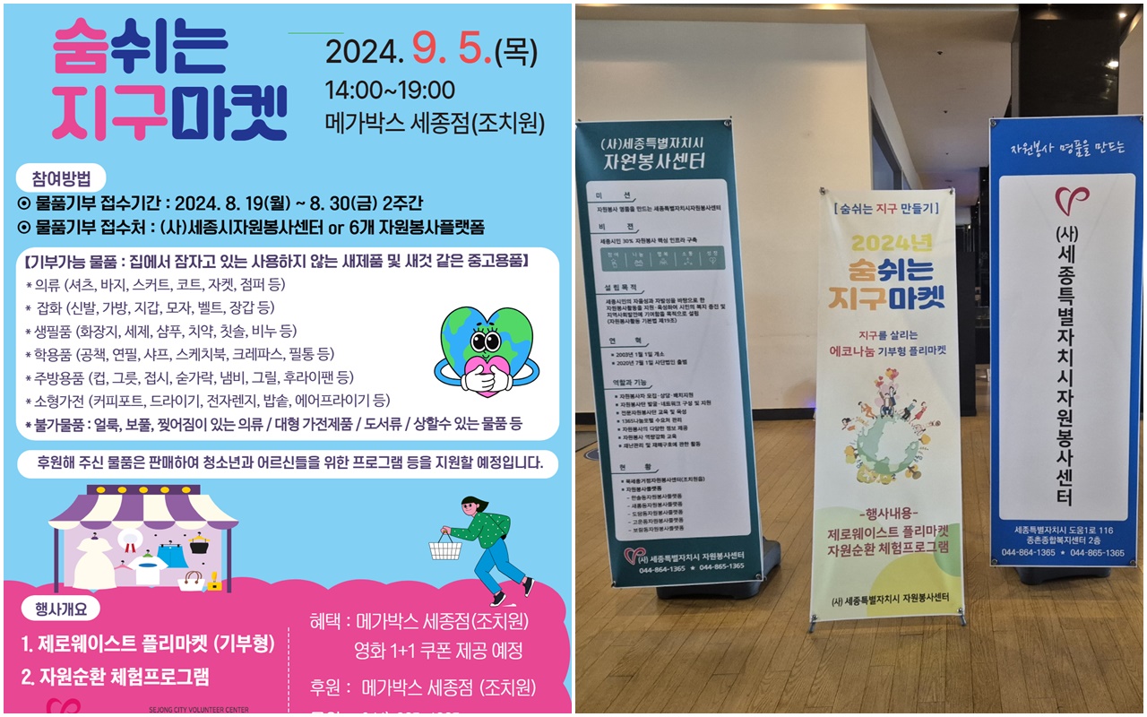 세종시자원봉사센터가 기획한 지구마켓은 자원 순환과 환경 보호를 실천하며, 지속 가능한 소비 문화를 확산하기 위한 기부형 프리마켓입니다.