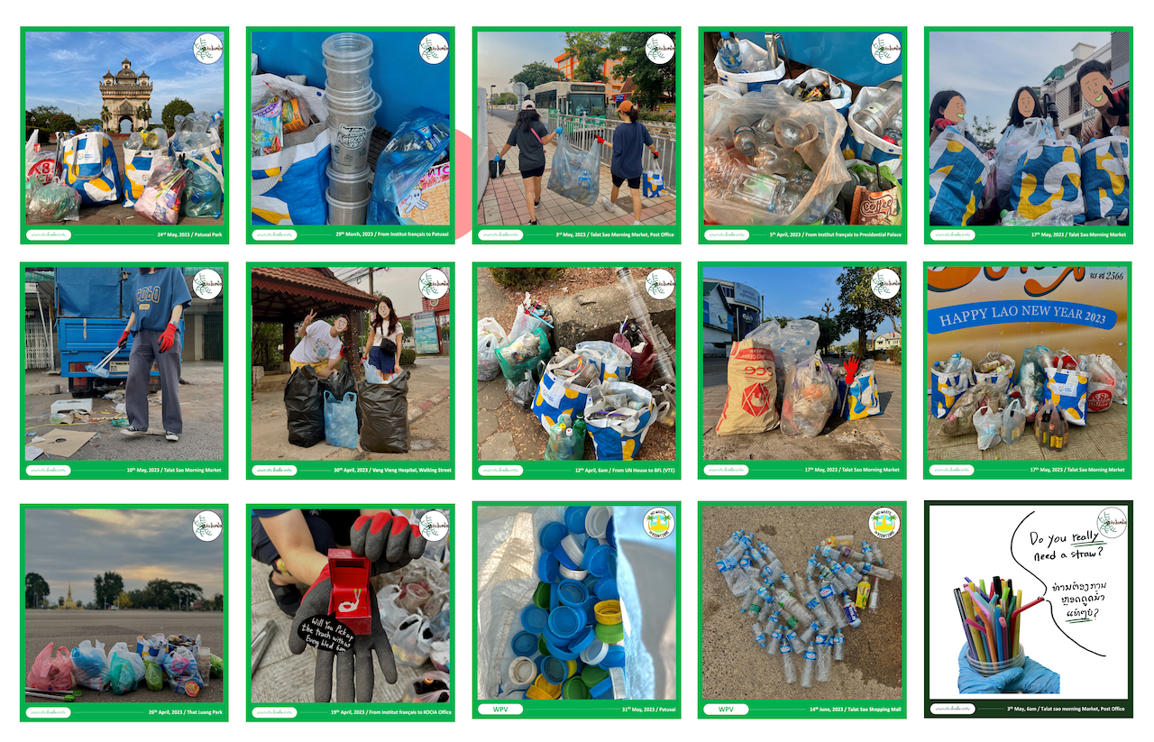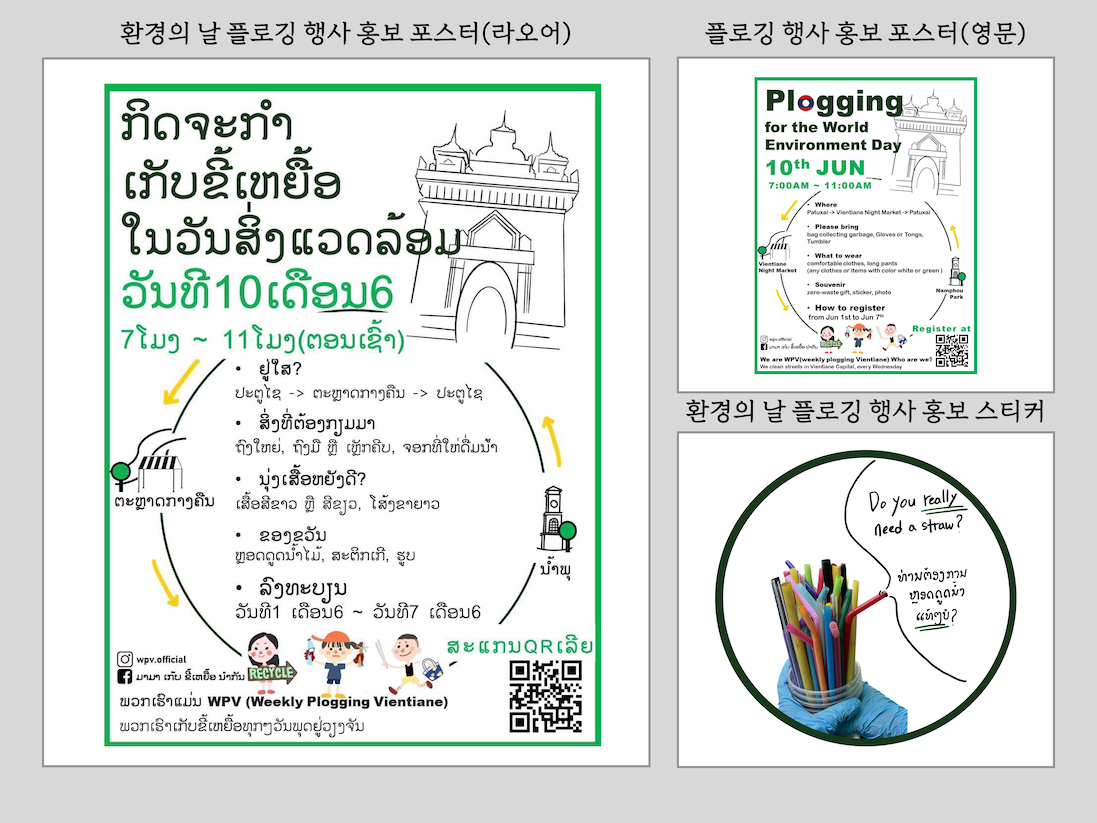 2023년 2월, 각기 다른 배경을 가지고, 다른 기관에서 근무하는 한국인 파견인력 3명이 모여, 라오스의 랜드마크, 공공기관, 중등학교 앞에서 플로깅을 시작했습니다. 매주 수요일 아침 6시부터 7시까지 동일한 시간 대에 지속적인 WPV(Weekly Plogging Vientiane/국문: 수요일은 쓰레기 줍는 비엔티안)활동은 현지 SNS를 통해 급격히 확산되었고, 이후 라오스국립대학교, 한국 기관 현지 사무소 직원들의 참여로 점차 확산되며, 6월 환경의 날을 기념해 진행한 대규모 플로깅 행사에는 무려 50명이 넘는 인원이 참석했습니다.