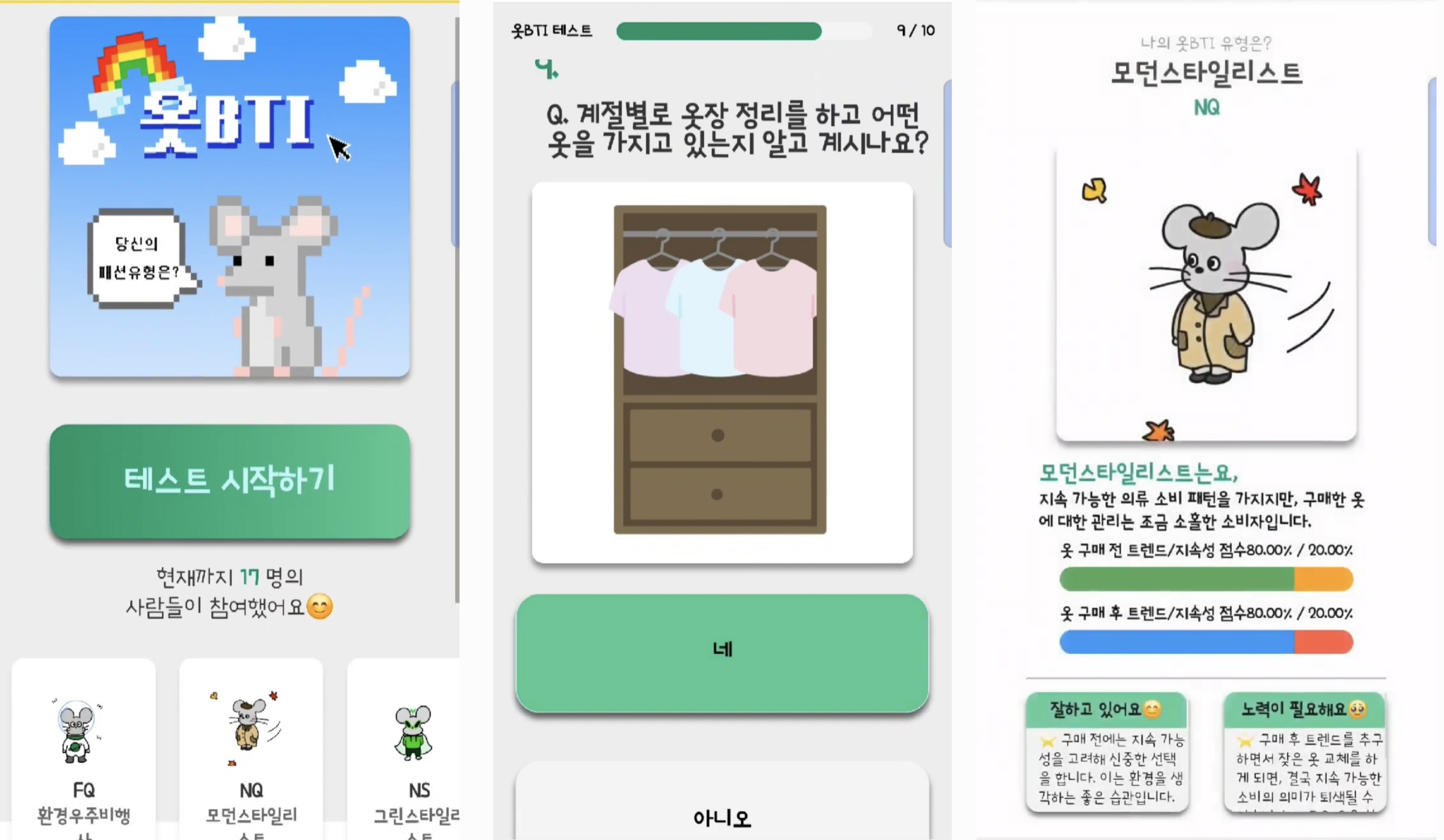 -패스트 패션에 대한 지식을 알리고 경각심을 일깨우는 심리 테스트 ‘옷BTI’ 사이트 제작