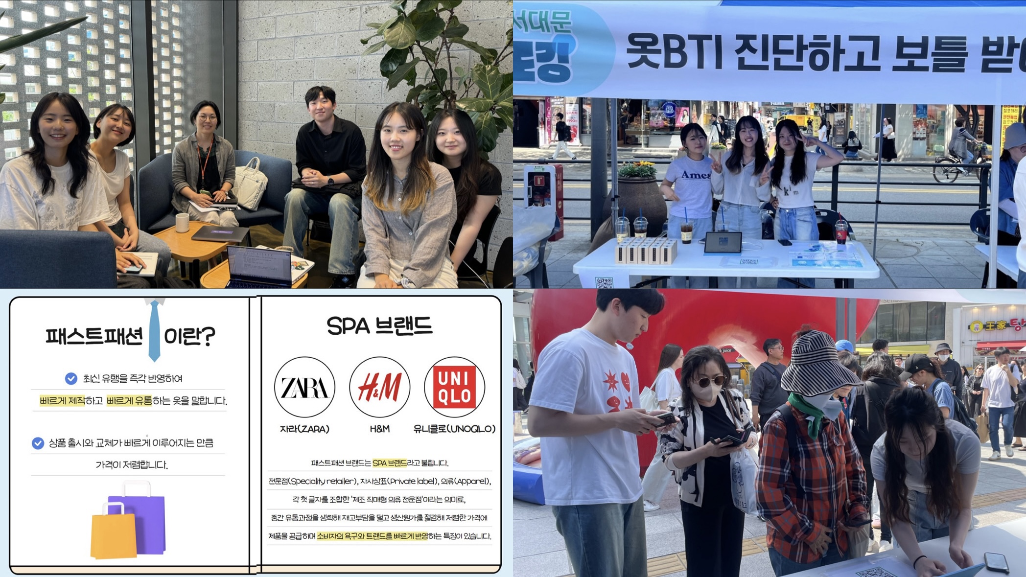 실제로, 1차 오프라인 옷BTI 캠페인에서 만난 한 대학생은 평소 카페 음료나 옷 등에서 발생하는 폐기물을 주요한 환경 문제로 인식하고 있었는데, 그에 반해 어느 중년 여성분은 집에서 발생하는 택배 상자, 각종 생필품, 그리고 각종 화학약품 이야기에 관심을 보이셨다. 또한, 2차 캠페인 ‘다시입다연구소’의 소장님과 협업 미팅을 진행했을 때, 소장님이 ’현재 30-40대인 세대는 소비 경제가 미덕으로 여겨지던 사회에서 자란 세대이기 때문에 환경 교육을 제대로 받지 못한 사람들이 많다’라는 말씀을 해주셨다. 과거에는 경제 발전이 우선시 되었지만, 이제 현재의 젊은 세대는 환경에 더 집중하고 이야기해야 한다는 것이었다.