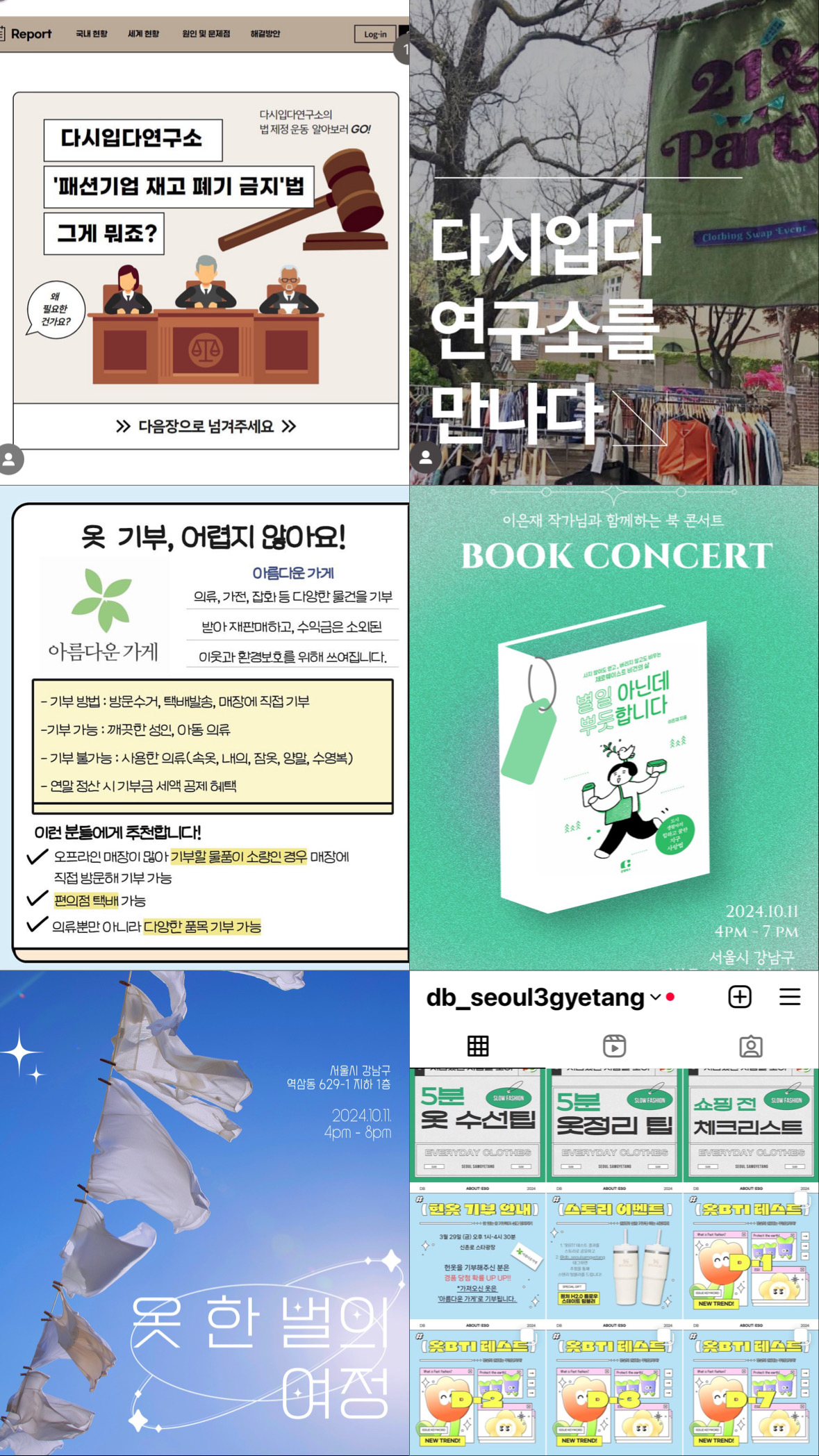 -다시입다연구소 협업 프로젝트 - 다시입다연구소 소개, 법 제정 운동, 옷 수선 방법 등 홍보 콘텐츠 제작