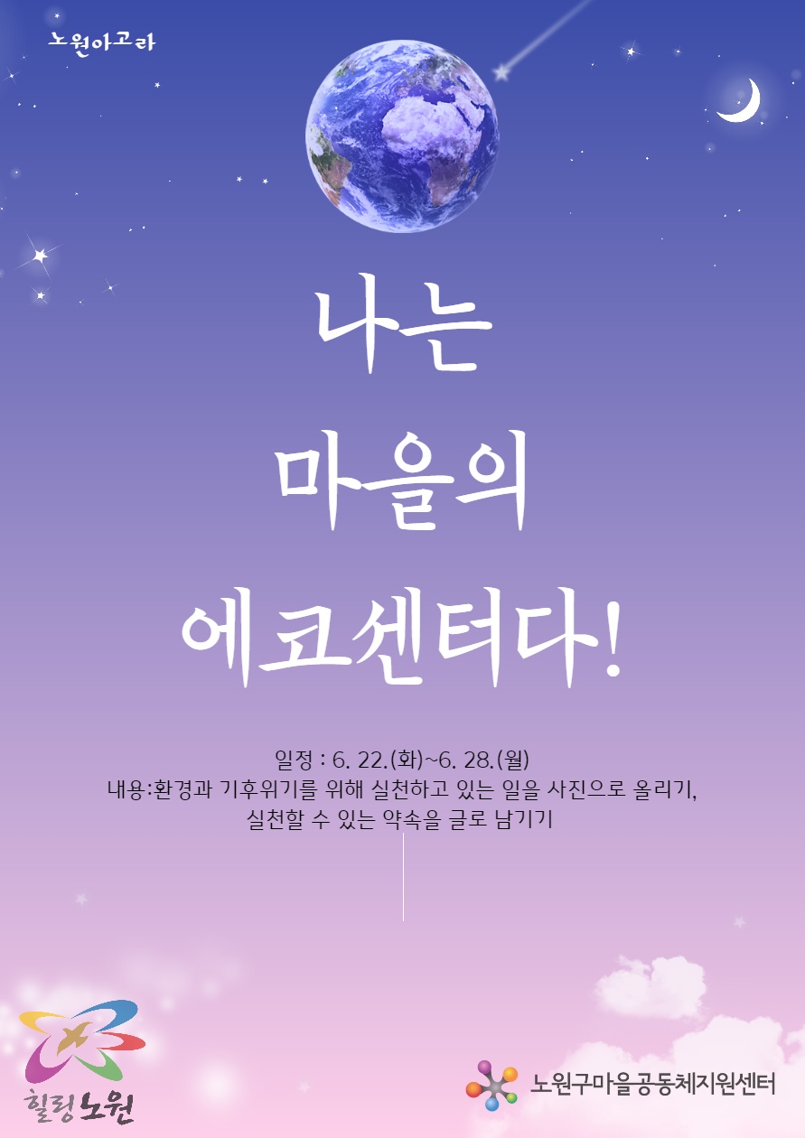 주민들이 제3의 공간에서 사람들과 지속적인 관계를 맺으며 소통하고 싶다는 의견들을 많이 주셔서 '노원아고라'라는 수다모임을 만들게 되었고, 그 속에서 무엇을 이야기할 것인가에 대해서는 모임 내에서 정하도록 하여 자발적인 참여를 유도했습니다. 올해는 심각한 기후위기로 인한 각종 재해를 실제 경험하고 있는 만큼 기후위기의 심각성에 대해 이야기 나누고, 생활 속에서 꾸준히 실천해나갈 수 있는 방향으로 주제를 정했습니다. 우선, 코로나로 인해 대면활동이 쉽지 않았던 만큼 5월엔 다육이를 통해 서로의 안부를 묻는 활동을 시작했고, 6월엔 환경을 위해 실생활에서 실천하고 있는 사례들을 SNS로 공유(사진)하는 '나는 마을의 에코센터다'라는 활동을 진행했습니다