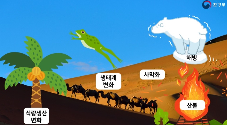 탄소배출이 증가하면 지구의 기온이 올라가 나무가 말라죽어 산림이 황폐해집니다. 나무가 없는 땅은 사막화가 되고 산사태가 일어나며 가뭄이 생기는등 자연재해가 발생하지요.