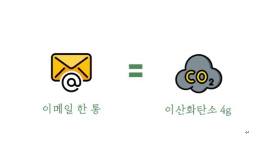 최근 뉴스 기사를 통해 개인 메일함의 메일 지우기, 스팸메일 차단하기를 통해 이산화탄소 배출을 줄일 수 있다는 사실을 알게 되었습니다. 코로나19로 온라인 수업, 재택근무 등 비대면 활동이 증가함에 따라 업무로 주고받는 이메일의 양이 증가하였습니다. 그로 인해 메일 전송, 보관 시 데이터센터에 저장공간 마련을 위해 많은 양의 전기가 사용되면서 많은 양의 이산화탄소가 발생하고 있습니다. 우리가 일상생활 속에서 주고받는 이메일 한 통에 약 4g의 이산화탄소가 발생하고 있으며, 불필요하게 보관되고 있는 이메일함 1GB를 지우면 14.9kg의 이산화탄소를 줄이는 효과가 있습니다. 세계 23억의 인구가 50개의 메일을 비우면 8,625,000GB라는 어마어마한 양의 데이터가 삭제되고, 이는 1시간 동안 27억개의 전구를 끄는 것과 같은 에너지 절약 효과를 가지고 온다고 합니다.
