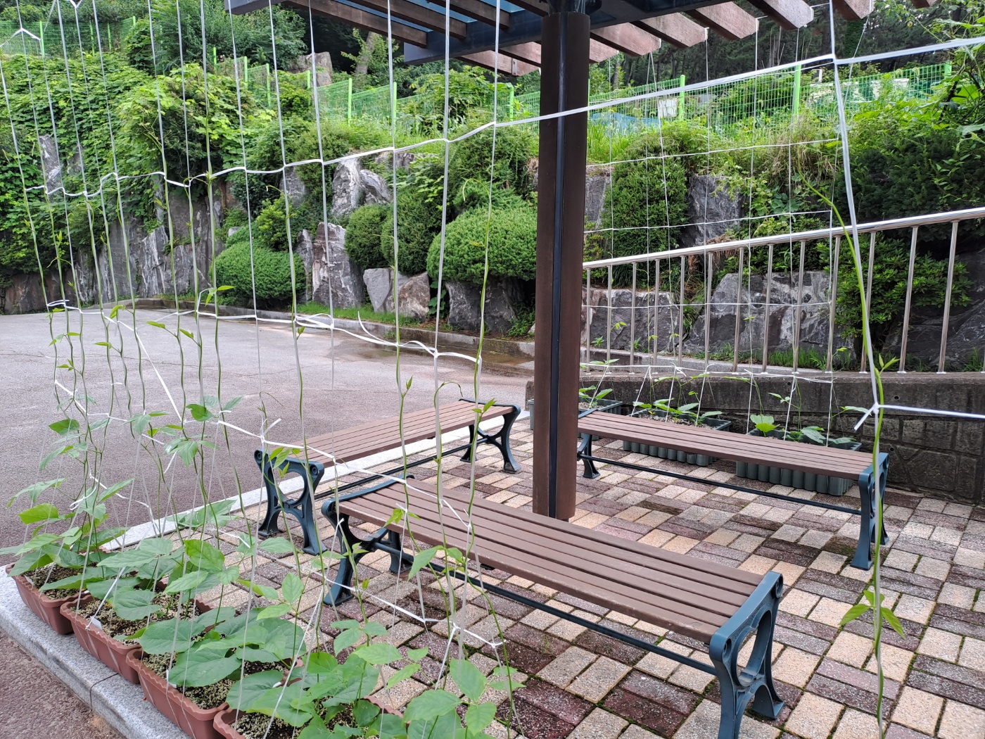 학교, 지역별 어디에서나 봉사활동을 통해 줄기식물을 심고 관리하여 그린커튼을 만든다. 종류별로 다양하게 심고 쉼터(휴식)공간을 만들어 안내하여 지속적으로 넓혀나간다.