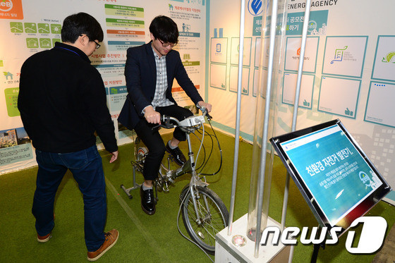 일상속에서 자전거를 타면서 생산되는 전기를 저장해 봉사시간과 교환하는 봉사활동입니다.